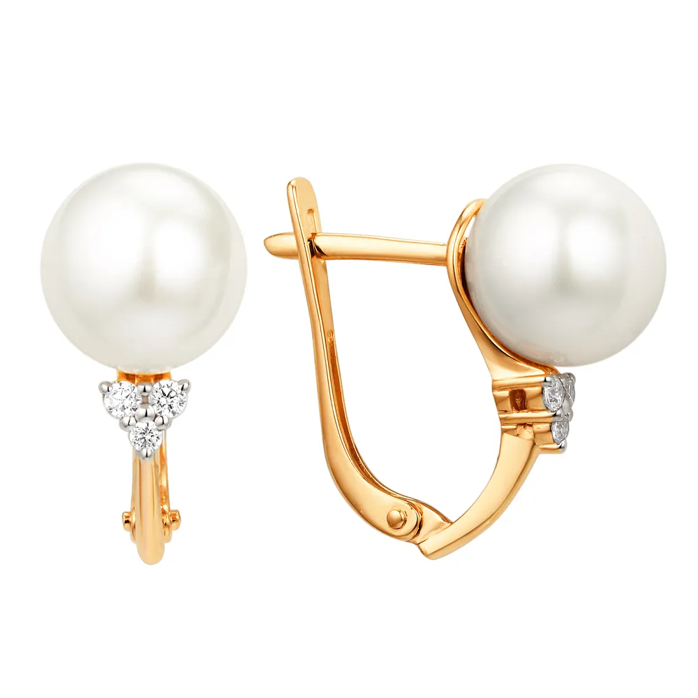 Серьги из красного золота с жемчугом и фианитами