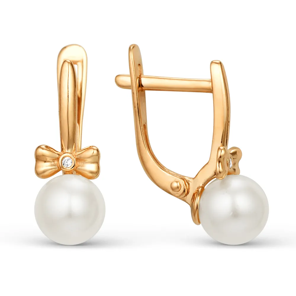 620106:337 Серьги из красного золота с жемчугом и фианитами Коллекция - Основная 0