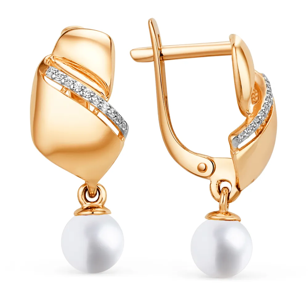 625788:337 Серьги из красного золота с жемчугом и фианитами Коллекция - Основная 0