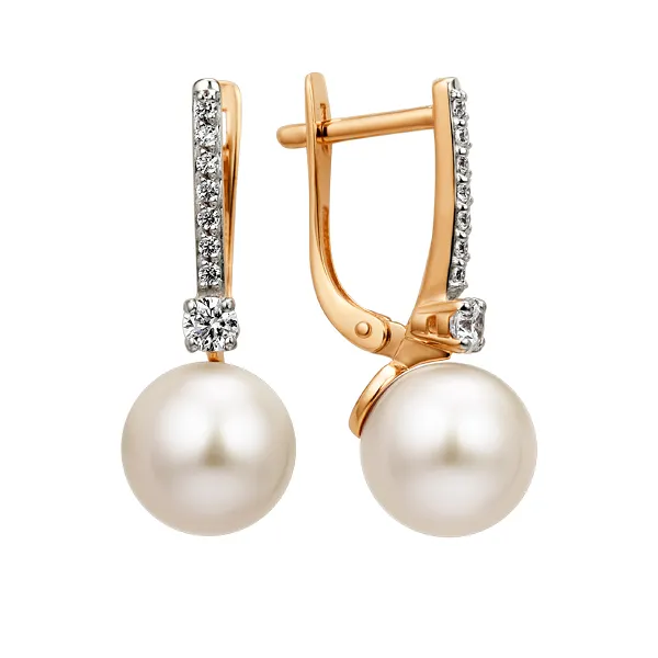 Серьги из красного золота с жемчугом и фианитами