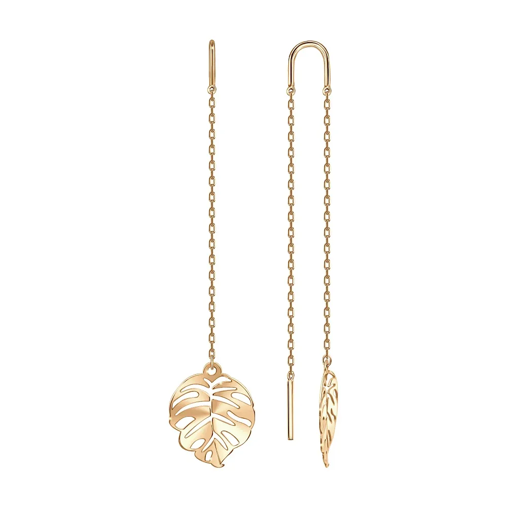 Серьги продевки из красного золота