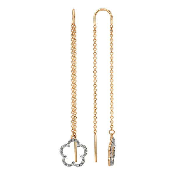 631248:337 Серьги продевки из красного золота с фианитами Коллекция - Основная 0