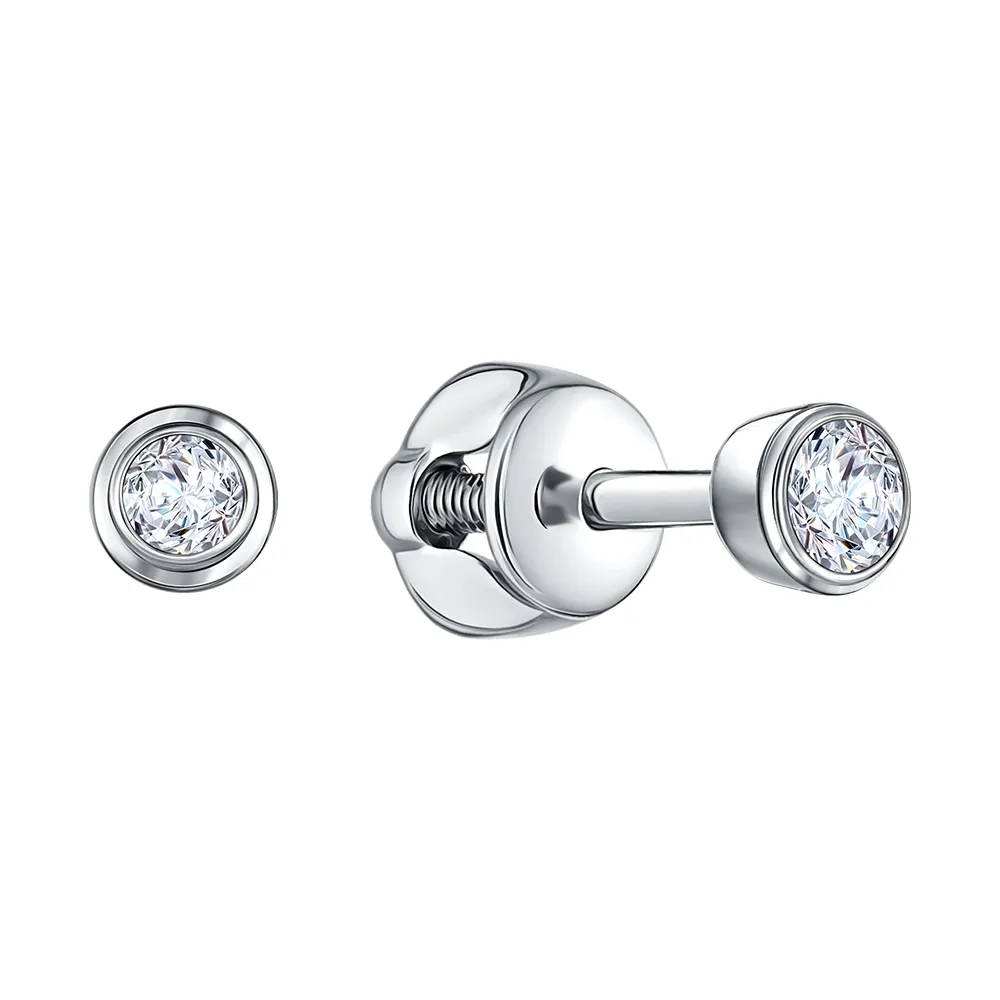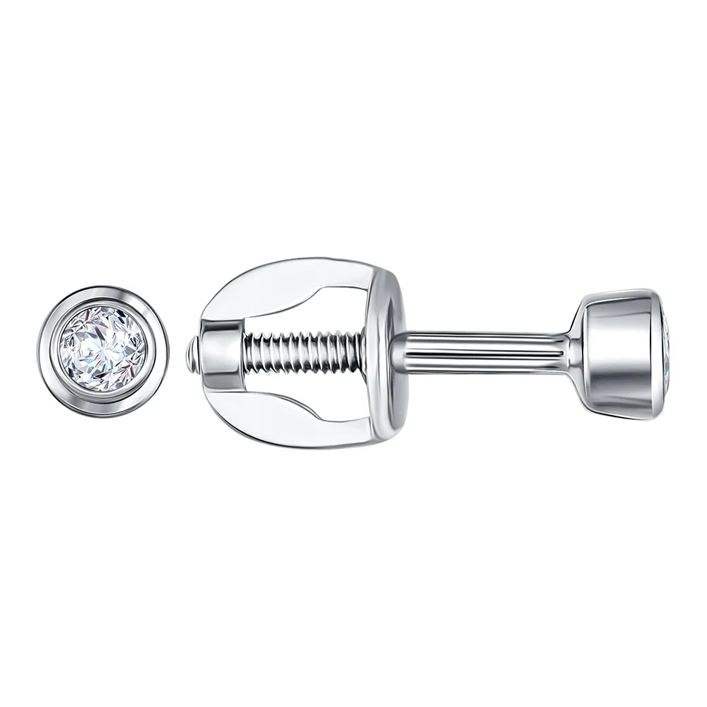 911973:337 Серьги пусеты из белого золота с бриллиантами Коллекция - Минимализм 0