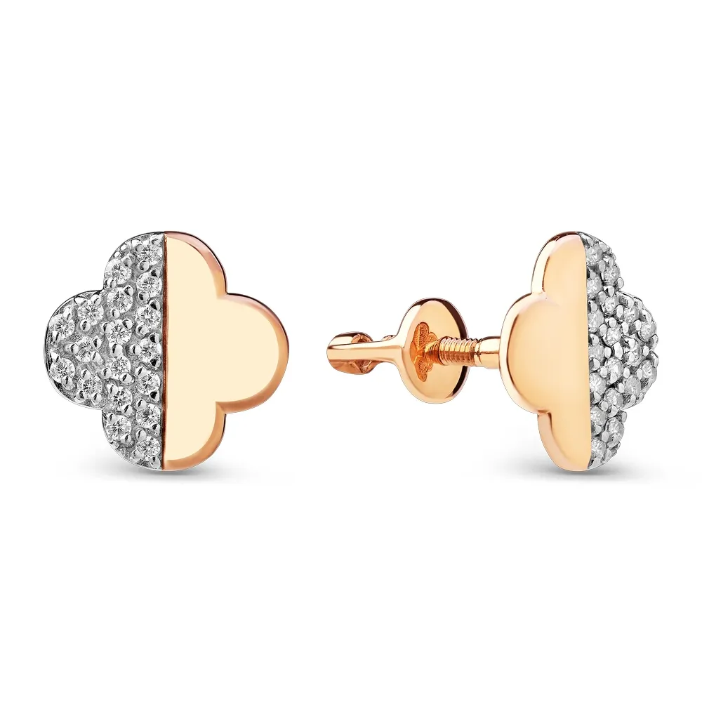 Серьги пусеты из красного золота с фианитами 024842-1102