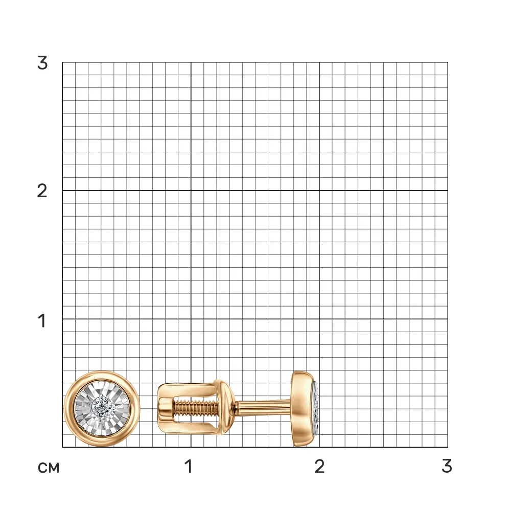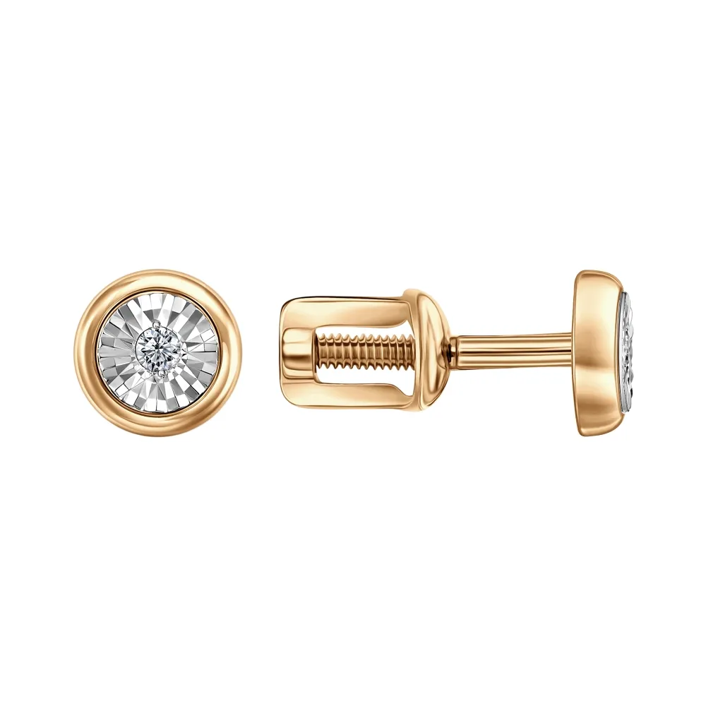 912373:337 Серьги пусеты из красного золота с бриллиантами Коллекция - 0