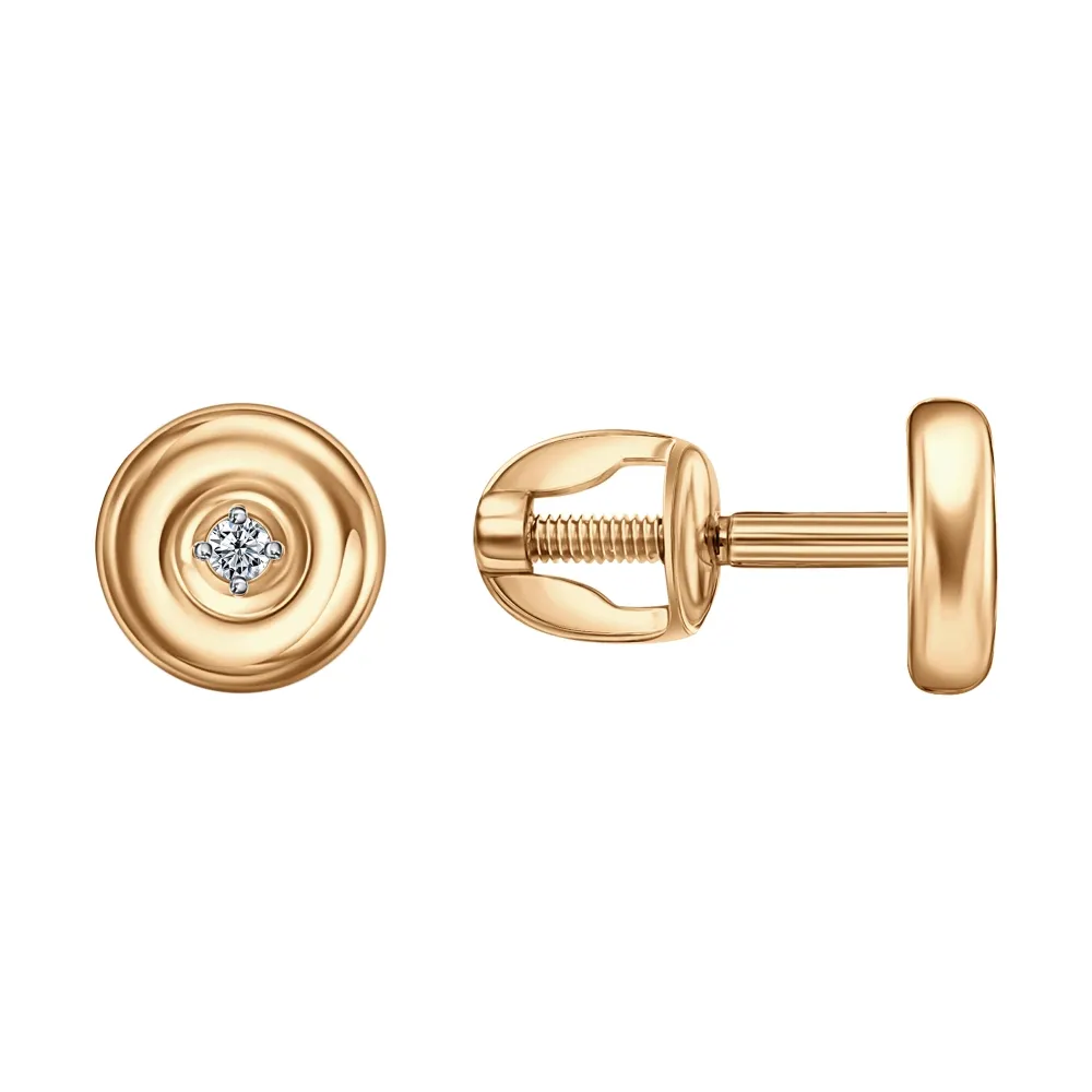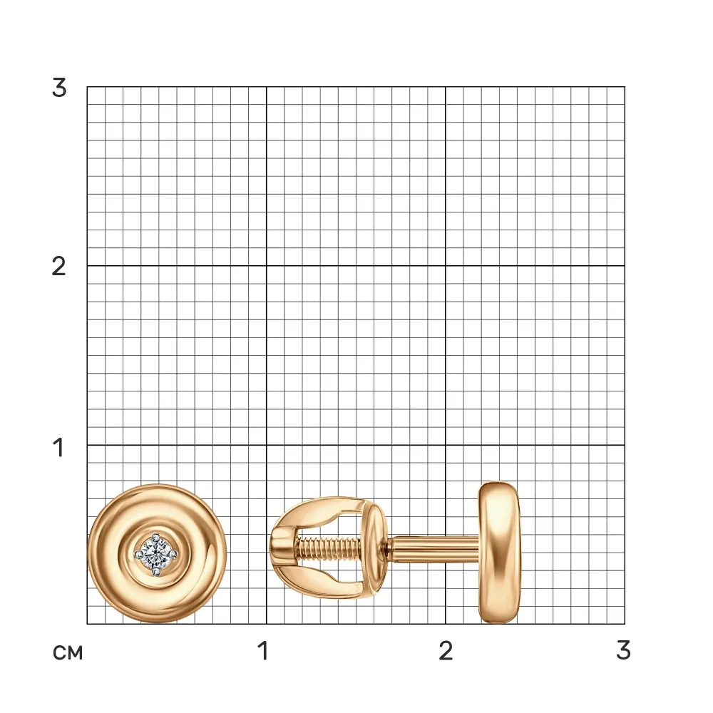 Серьги пусеты из красного золота с фианитами 024842-1102