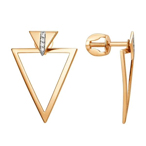 713731:337 Серьги пусеты из красного золота с фианитами Коллекция - Основная 0