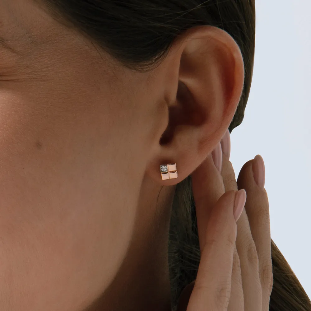 714043:337 Серьги пусеты из красного золота с фианитами Коллекция - Основная 0
