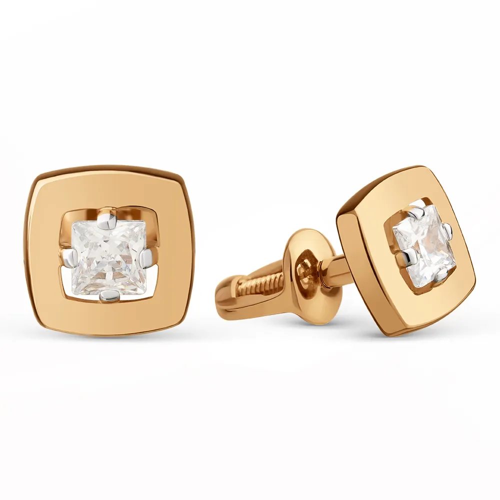 Серьги пусеты из красного золота с фианитами 024842-1102