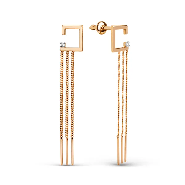 716089:337 Серьги пусеты из красного золота с фианитами Коллекция - Основная 0