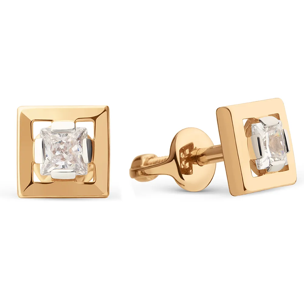 Серьги пусеты из красного золота с фианитами 024842-1102