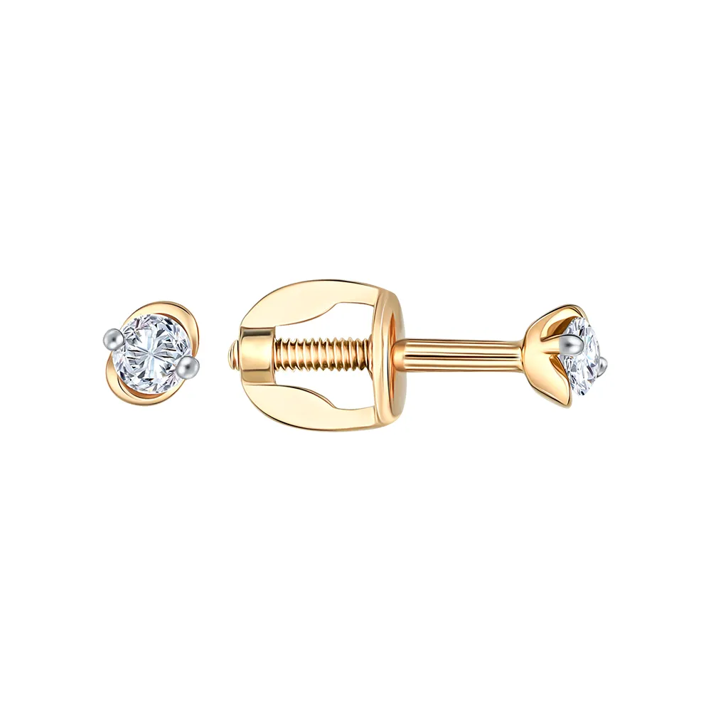 Серьги пусеты из красного золота с фианитами 024842-1102