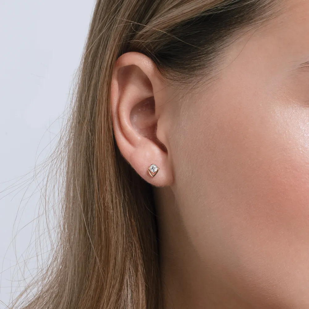 Серьги пусеты из красного золота с фианитами