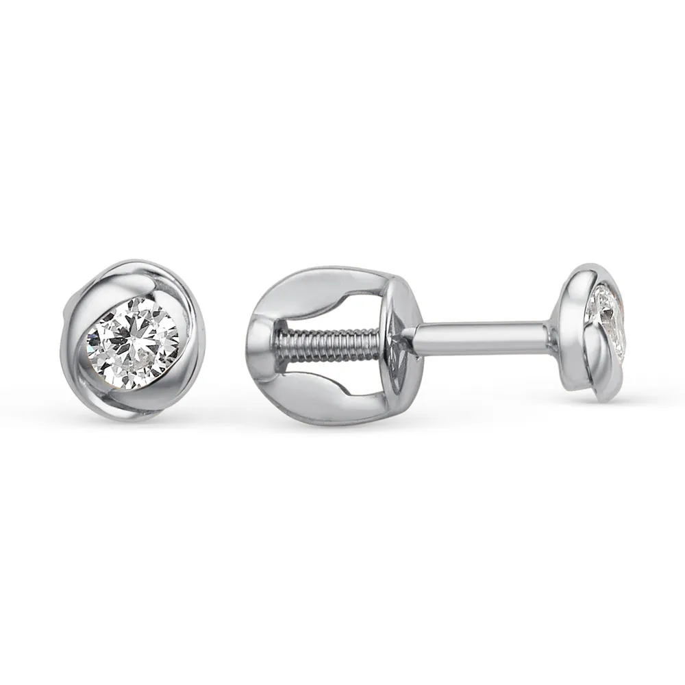 Серьги пусеты из белого золота с фианитами 003282-3101