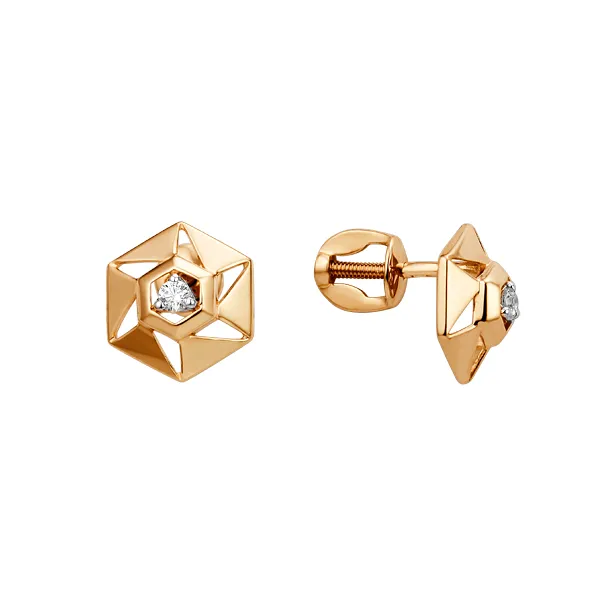 631112:337 Серьги пусеты из красного золота с фианитами Коллекция - Основная 0