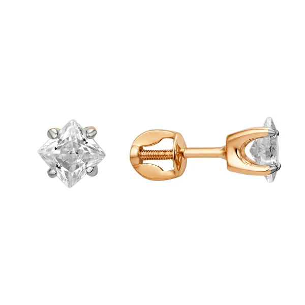 Серьги пусеты из красного золота с фианитами 024842-1102