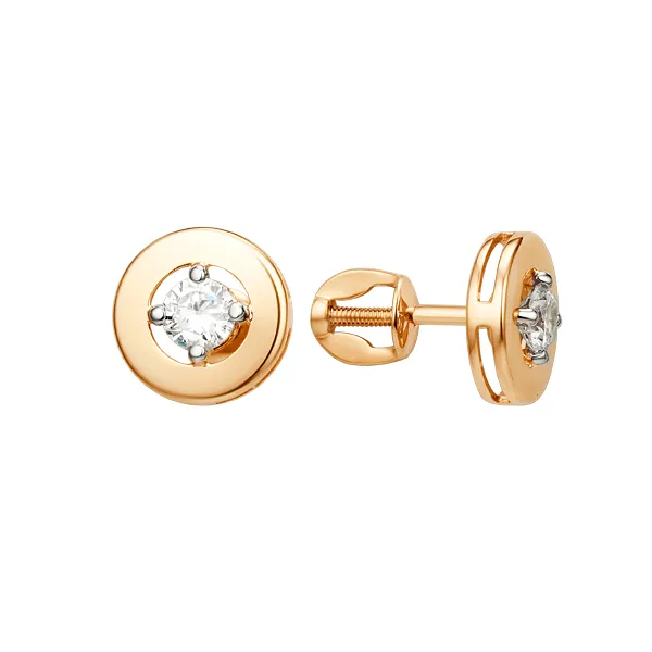 641085:337 Серьги пусеты из красного золота с фианитами Коллекция - Основная 0