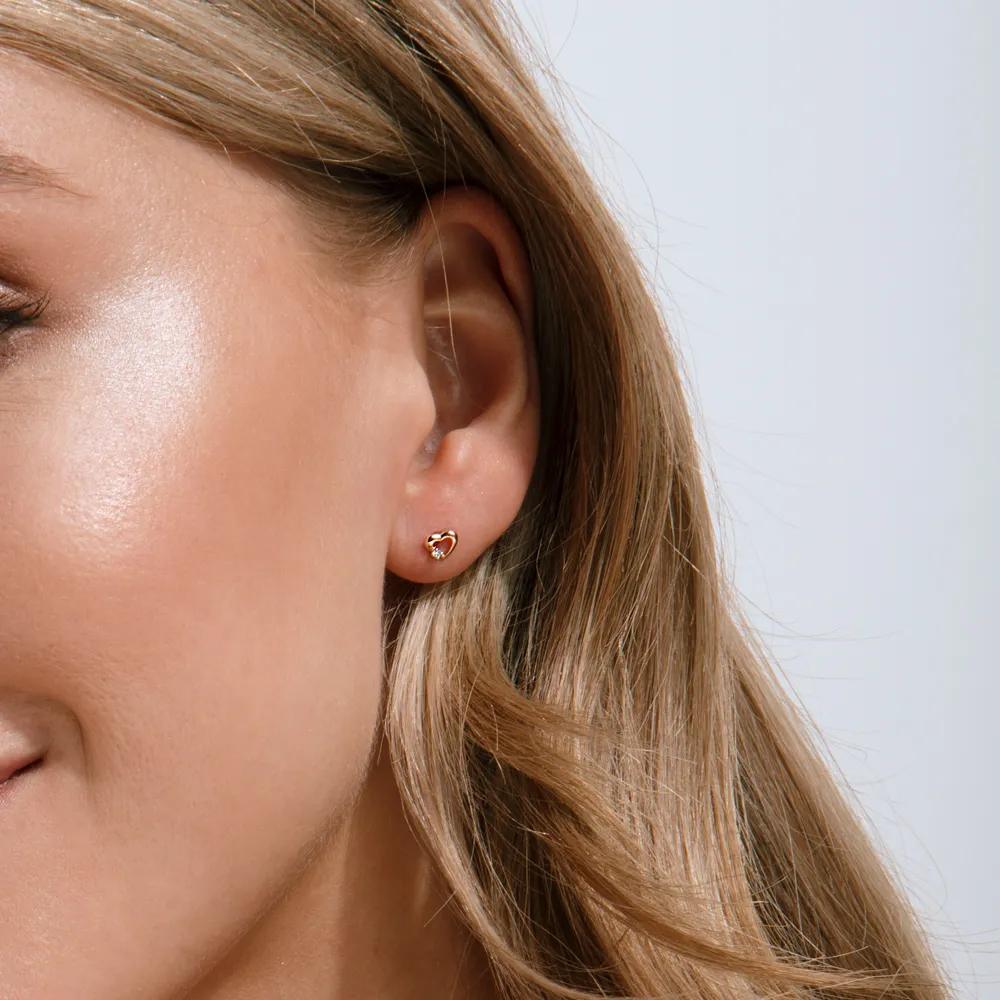 Серьги пусеты из красного золота с фианитами