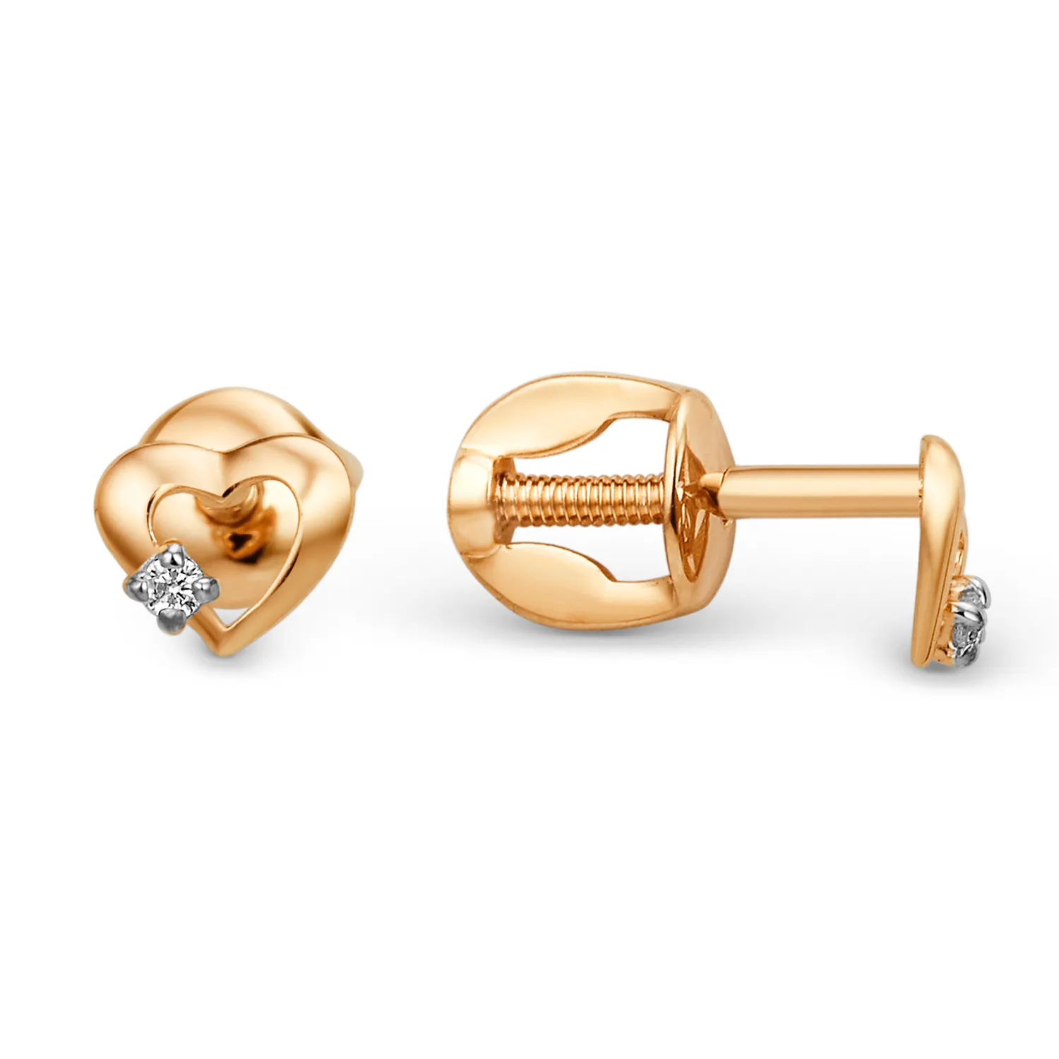 649749:337 Серьги пусеты из красного золота с фианитами Коллекция - Основная 0