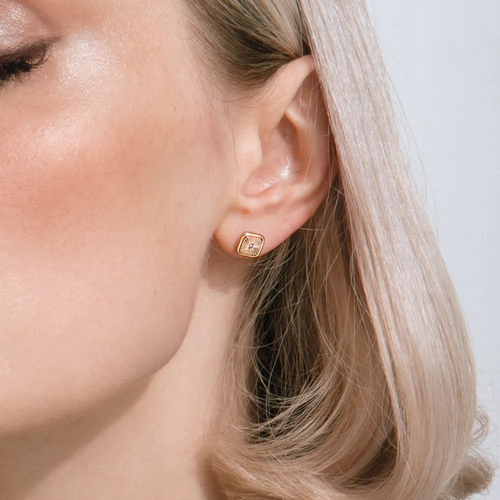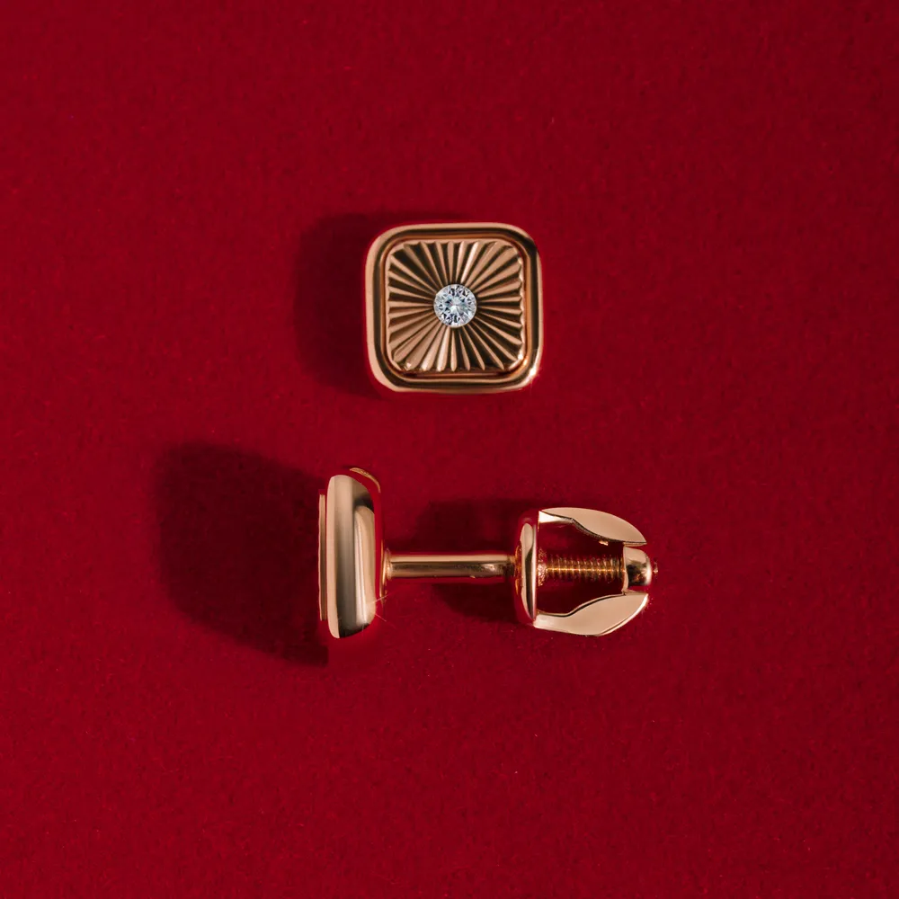 766512:337 Серьги пусеты из красного золота с фианитами Коллекция - Минимализм 0