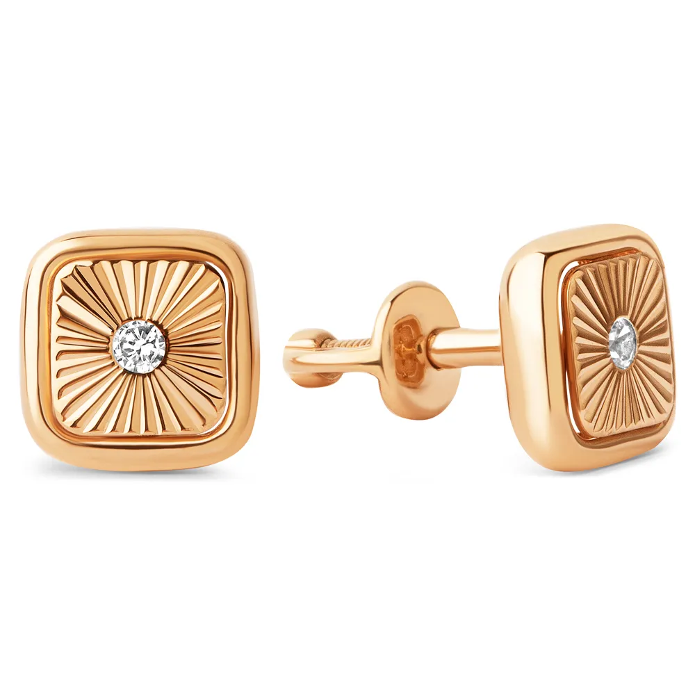 Серьги пусеты из красного золота с фианитами 024842-1102