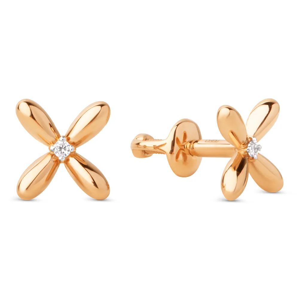 Серьги пусеты из красного золота с фианитами 024842-1102