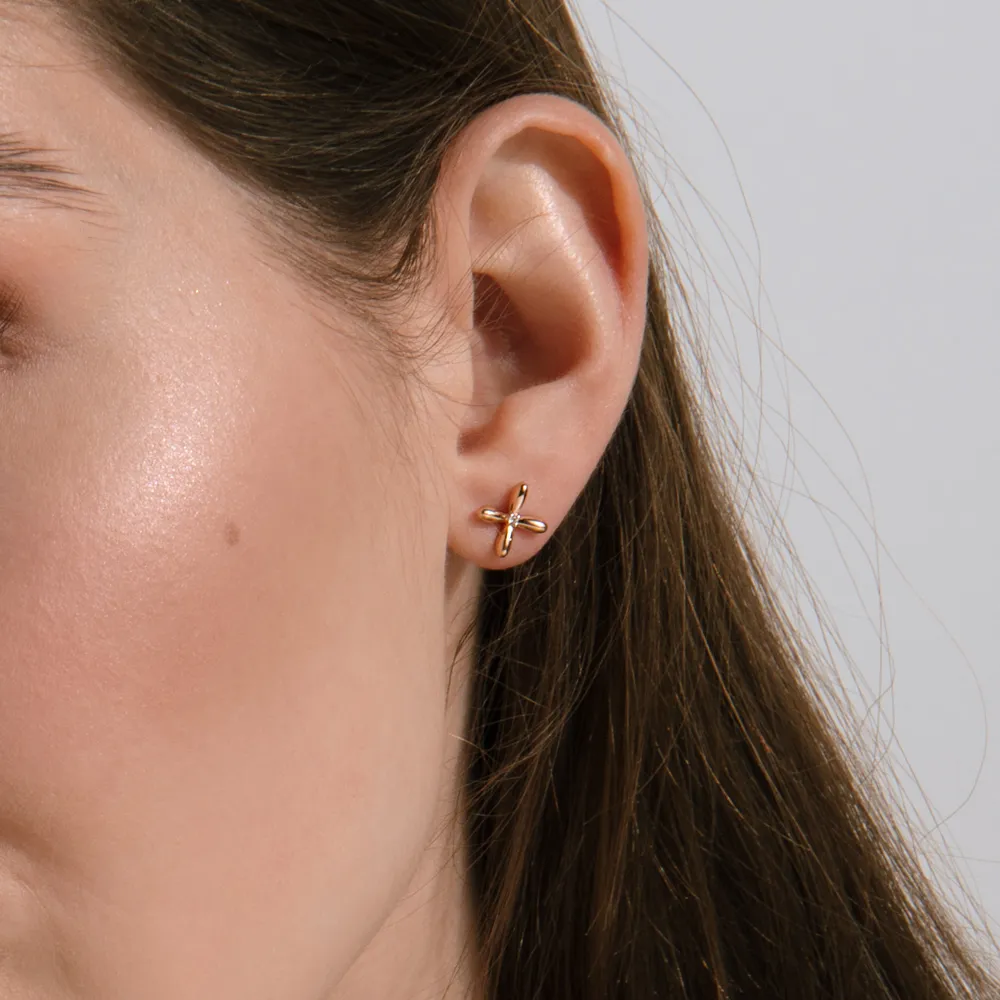 Серьги пусеты из красного золота с фианитами
