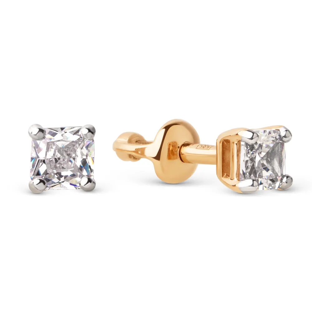 Серьги пусеты из красного золота с фианитами 024842-1102