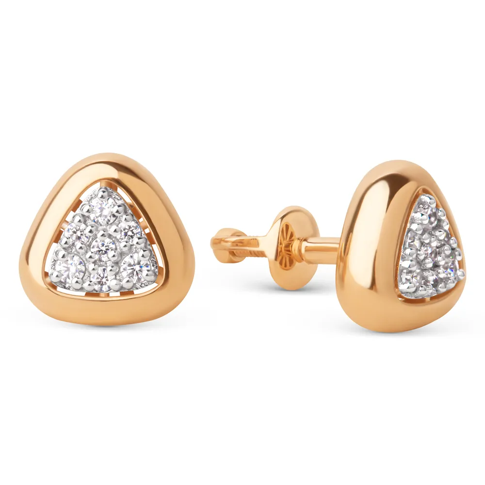 Серьги пусеты из красного золота с фианитами 024842-1102
