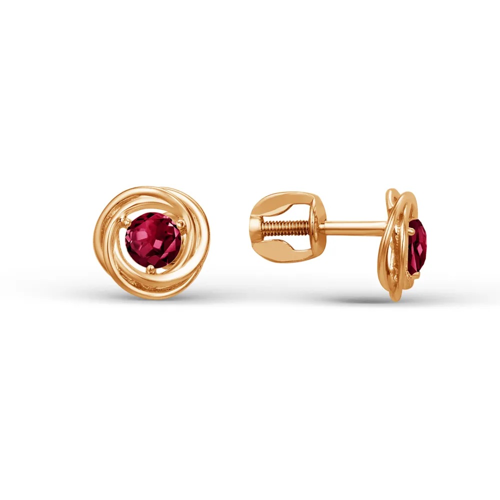 613999:337 Серьги пусеты из красного золота с гранатами Коллекция - Основная 0